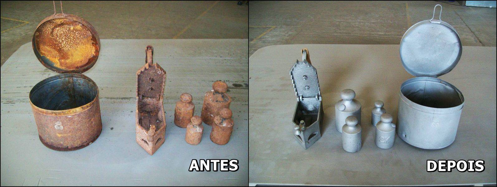Com o Jateamento de Granalha em metais obtem-se um superior grau de limpeza e resulta em um correto acabamento superficial, o processo consegue remover de maneira eficaz tinta, verniz, adesivos, graxa, ferrugem e corrosão, deixando a peça pronta para ser restaurada e finalizada como o desejado.